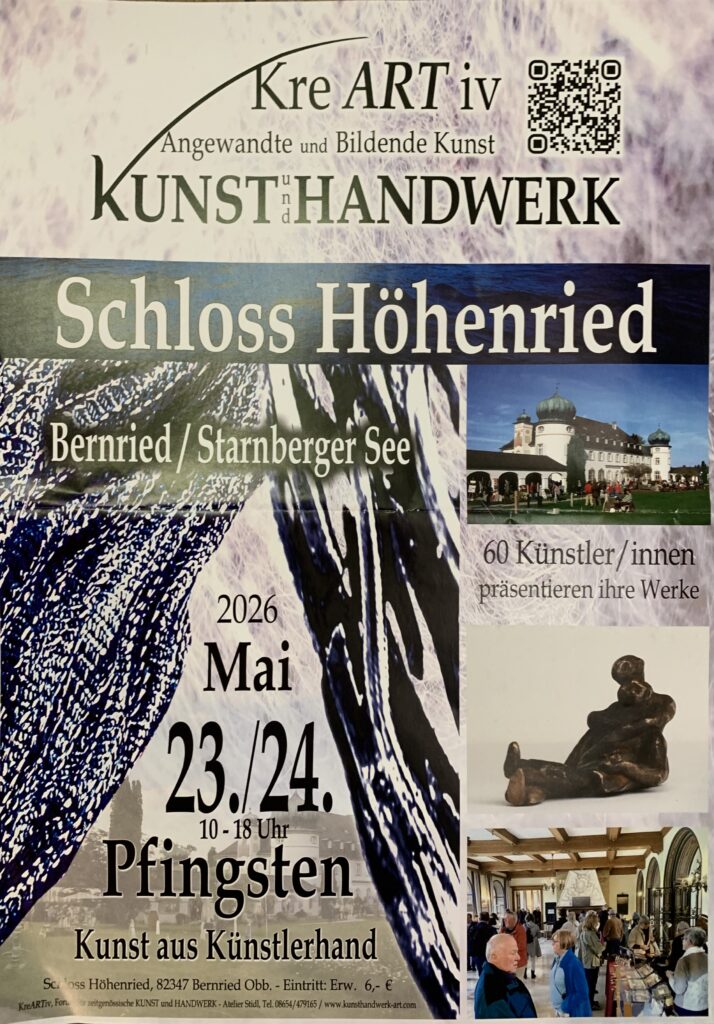 Ausstellung KreARTiv Pfingsten 23. und 24. Mai 2026 Schloss Höhenried82347 Bernried in Obb. geöffnet Samstag und Sonntag10 – 18 Uhr ZONTA Frühlingstage 2026 Ausstellungen UTE ART